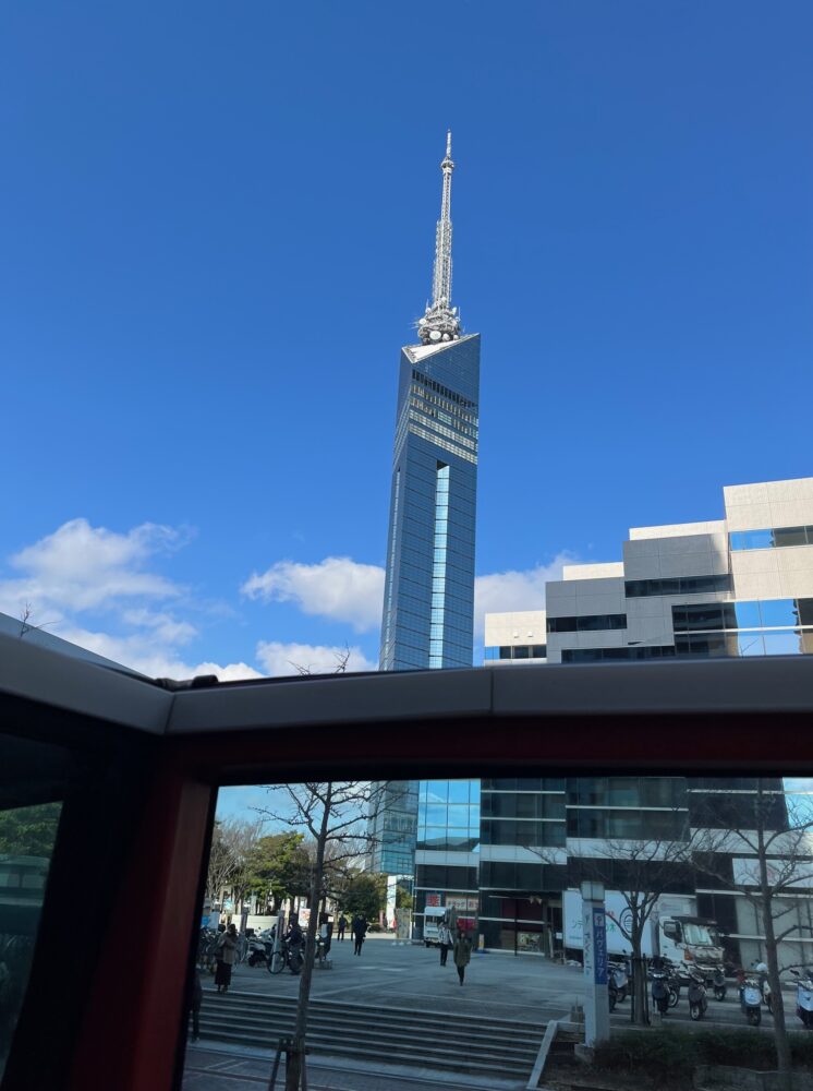 いつもより高い位置から眺めの良い席から、いろんな角度から見える福岡タワーを楽しみ、